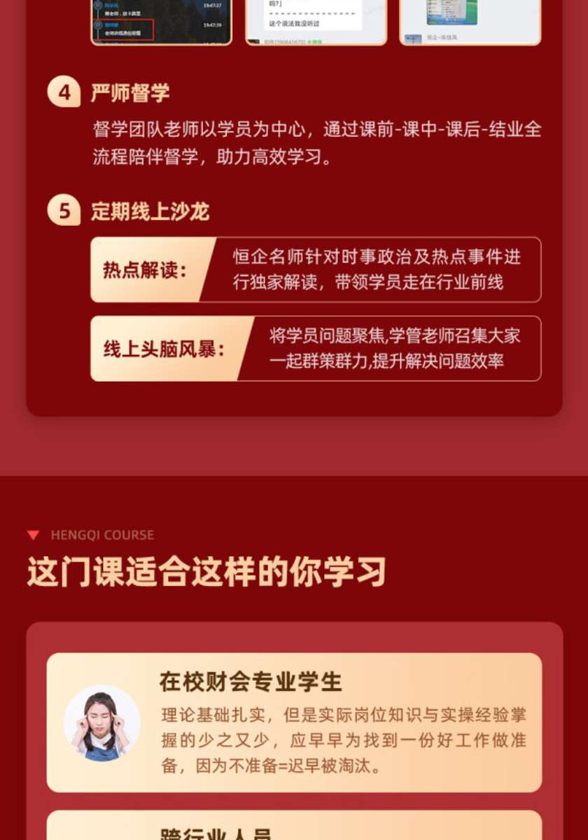 恒企教育基于“互聯(lián)網(wǎng)+教育”、“教育+科技”的經(jīng)營思想,依托全國教育網(wǎng)點(diǎn)資源和領(lǐng)先的互聯(lián)網(wǎng)技術(shù),正在全力打造一所無邊界的互聯(lián)網(wǎng)企業(yè)大學(xué)。通過線上云網(wǎng)校、全國終端網(wǎng)點(diǎn),打造行業(yè)領(lǐng)先的移動(dòng)學(xué)習(xí)方案,真正實(shí)現(xiàn)學(xué)員隨時(shí)隨地學(xué)習(xí)、無憂學(xué)習(xí)、高效學(xué)習(xí),將中國優(yōu)質(zhì)的教育資源覆蓋全國,實(shí)現(xiàn)了教育的公平與高效。恒企教育依托強(qiáng)大的資源賦能,正在迅速成為一家行業(yè)領(lǐng)先的在線教育機(jī)構(gòu)。恒企教育堅(jiān)守著教育的初心,作為專業(yè)有溫度的教育機(jī)構(gòu),承擔(dān)起成為中國職業(yè)教育資源的整合者,國家職業(yè)教育標(biāo)準(zhǔn)的參與者和國際職業(yè)教育的傳播者的社會(huì)職責(zé),為國家的教育事業(yè)貢獻(xiàn)最大的能量!